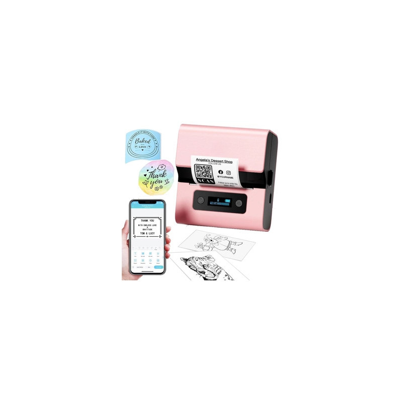Kompaktowa drukarka AIMO Phomemo M221 w odcieniu różowym to urządzenie przeznaczone głównie do użytku w sklepach stacjonarnych oraz butikach, znajduje zastosowanie przy drukowaniu nazw dokumentów, oznaczeń cenowych, opisów produktów czy do uporządkowania towaru na regałach magazynowych, w komplecie znajduje się różowa drukarka, rolka etykiet termicznych z klejem o wymiarach 40 na 30 mm w ilości 230 sztuk oraz regulowany uchwyt, dołączony jest również kabel USB typu C i instrukcja obsługi, urządzenie obsługuje zarówno połączenie przewodowe jak i bezprzewodowe, można je wykorzystywać jako sprzęt przenośny, drukuje w technologii termicznej w maksymalnej rozdzielczości 203 DPI, pozwala na nanoszenie treści na etykiety o szerokości do 80 mm, jest zgodna z komputerami, tabletami oraz smartfonami, wspiera systemy operacyjne Android, iOS, Windows, MacOS oraz Linux, wyposażona została w interfejs Bluetooth i złącze USB, kolor obudowy to różowy, gwarancja na produkt wynosi 24 miesiące.